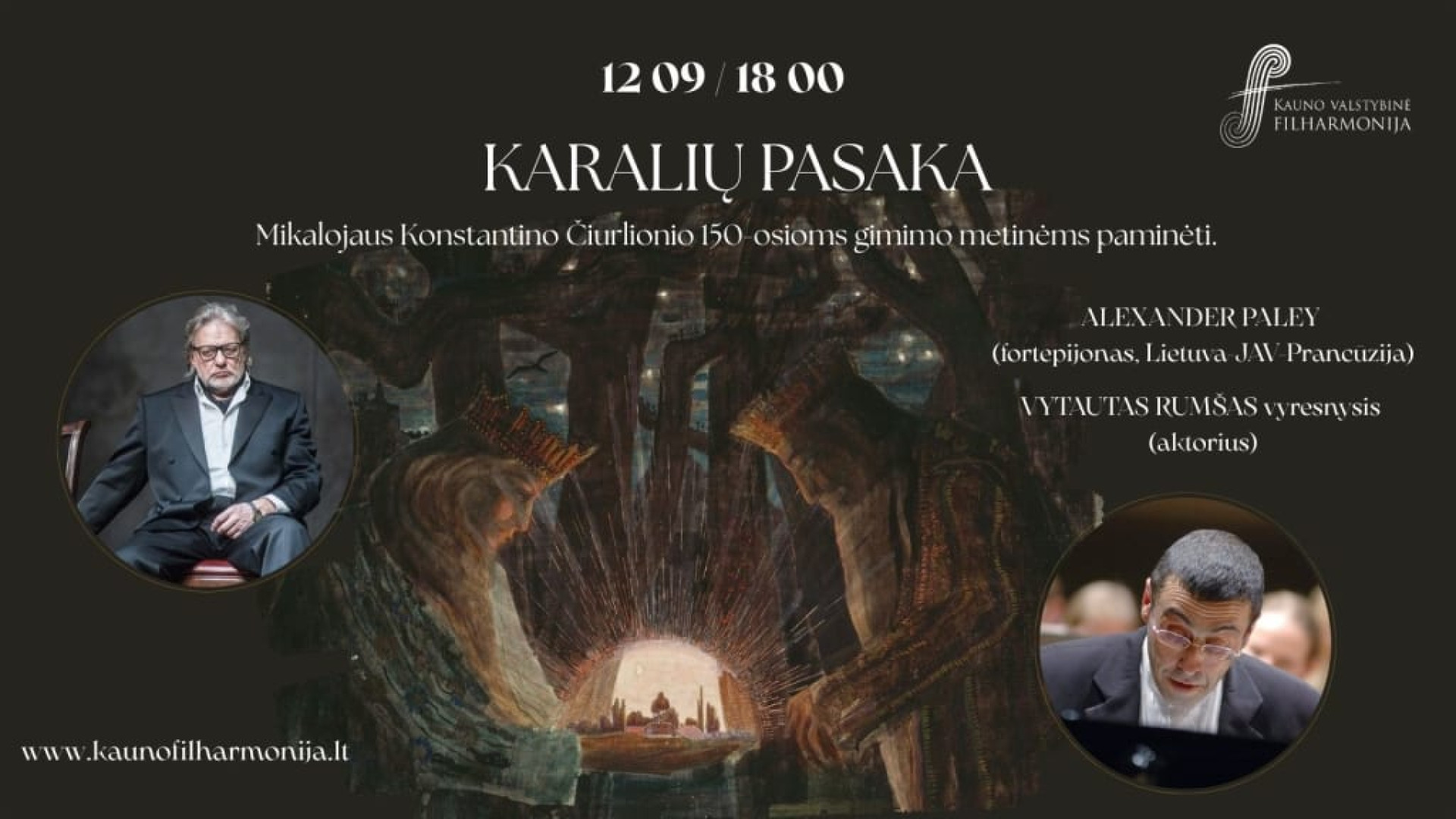 Šiame koncerte, kurį klausytojams parengė tikri scenos karaliai – aktorius Vytautas Rumšas vyresnysis ir fortepijono virtuozas Alexanderis Paley‘us, bendron dermėn susilies M. K. Čiurlionio kurti tekstai ir nuostabūs jo preliudai fortepijonui. Jau pažįstantiems šių dviejų atlikėjų meninę įtaigą iš karto aišku, kad vakaras taps nepaprastai šiltu ir apdovanos klausytojus čiurlionišku dvasingumu.
