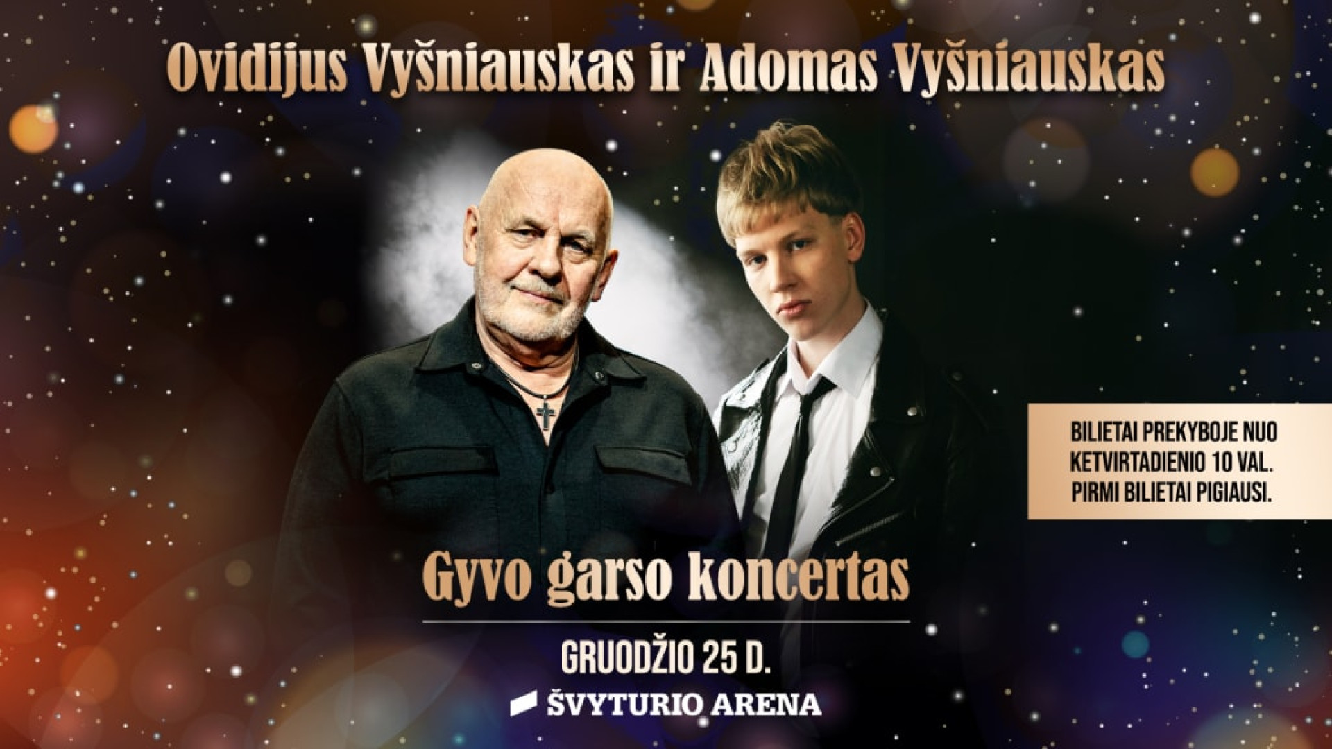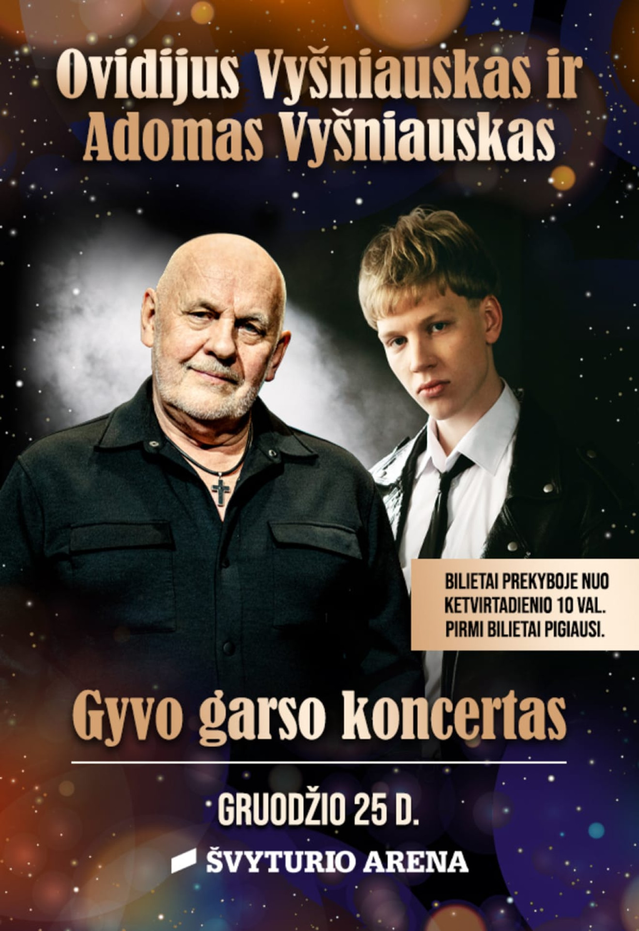 2024 m. gruodį Palangos koncertų salėje pirmą kartą vienoje scenoje pasirodė tėvas ir sūnus – Ovidijus Vyšniauskas ir Adomas Vyšniauskas. Tai buvo jausmingas, šiltas ir labai sėkmingas vakaras, virtęs tikru šventiniu vakarėliu. O šiemet – viskas dar stipriau: abu atlikėjai pasirodys su savo gyvo garso grupėmis, atliks pilnas programas, kuriose – ir legendiniai hitai, ir naujos dainos, kurias žiūrovai išgirs vieni pirmųjų.